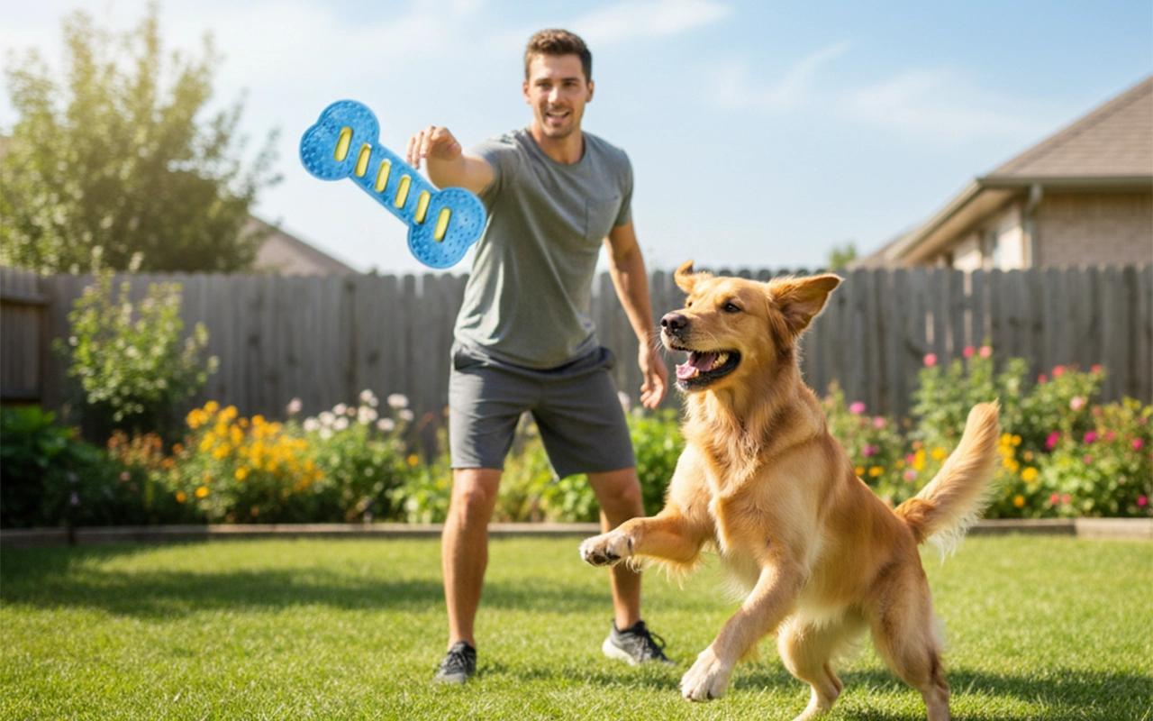 Momentos de conexão são melhores com uma opção interativa de buscar. O brinquedo mantém os cães entretidos, reduz hábitos destrutivos e promove exercícios.