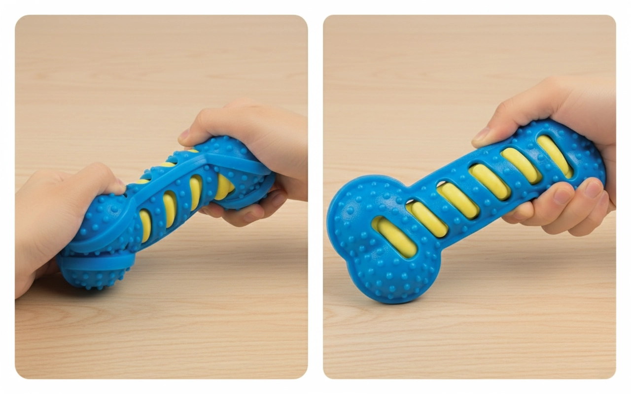 A borracha durável resiste à mordida e continua segura para brincadeiras diárias. Nenhum produto químico nocivo está presente neste design resistente.