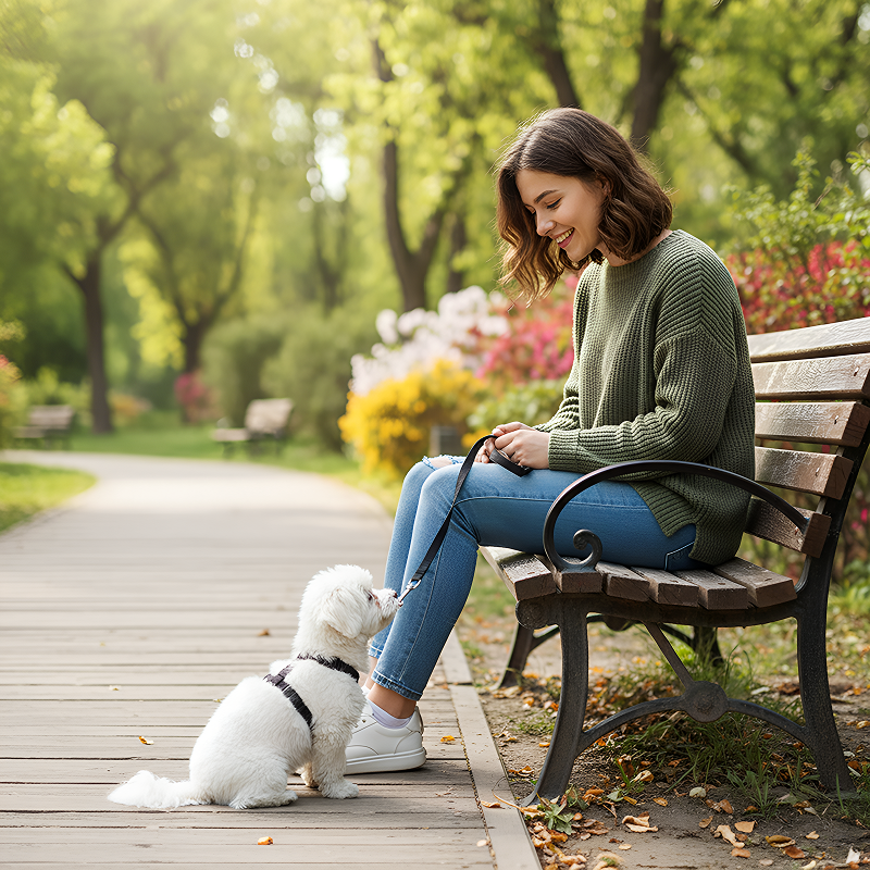 Tons vibrantes ajudam você a encontrar seu companheiro rapidamente ao ar livre. Caminhar fica mais seguro e relaxante para ambos.