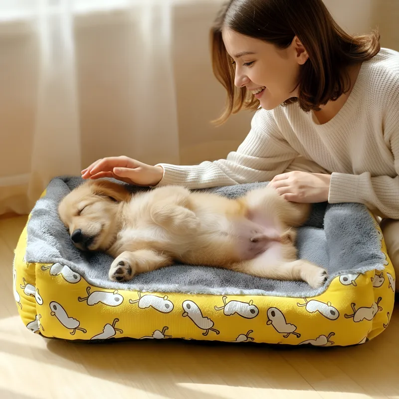 Enchimento fofo envolve o corpo e alivia suavemente a pressão do dia a dia. Os pets desfrutam de um sono tranquilo sem pontos duros sob as articulações.