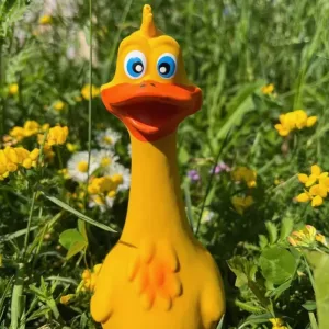 Brinquedo de pato bastante bom! O meu cão adora o som do apito, mas começa a mostrar sinais de desgaste após algumas semanas. Razoável para mastigadores moderados e muito divertido.