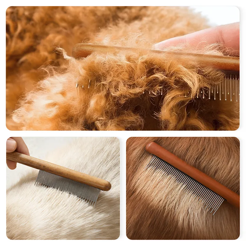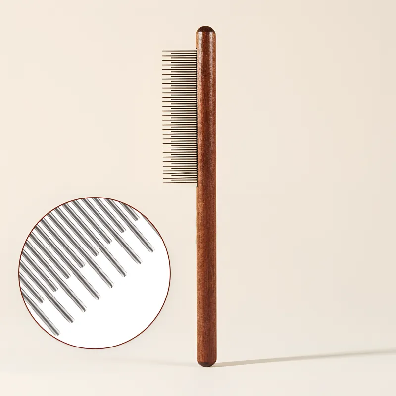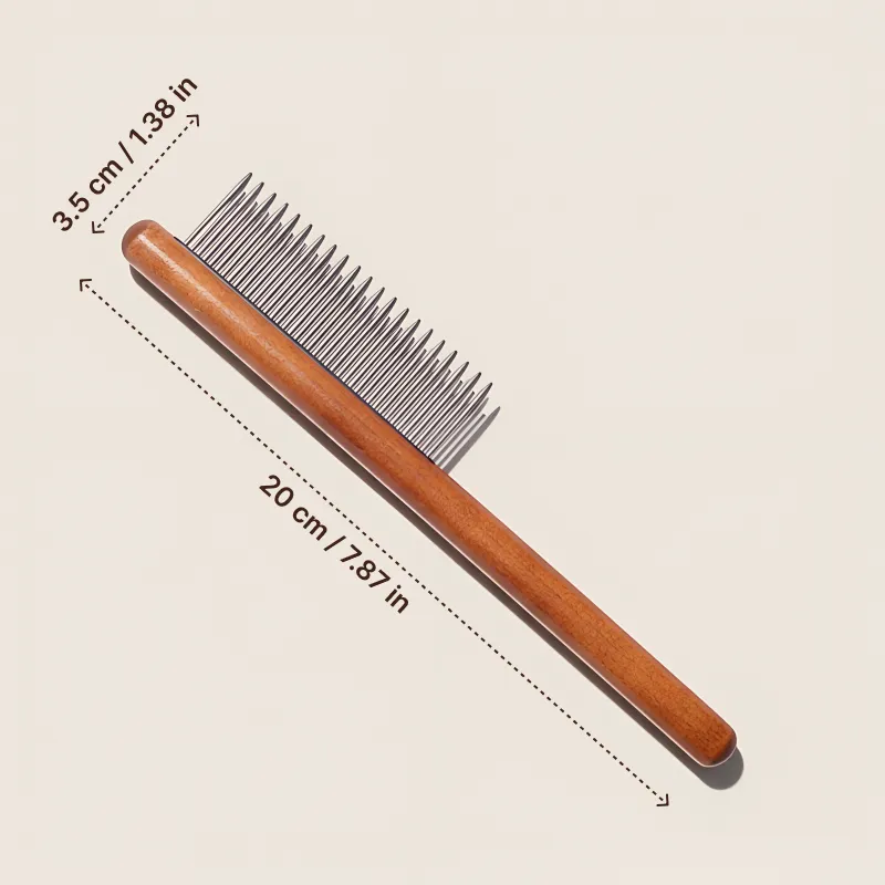 Pente de Aço Inoxidável para Gatos e Ferramenta de Pulgas para Animais com Cabo de Madeira
