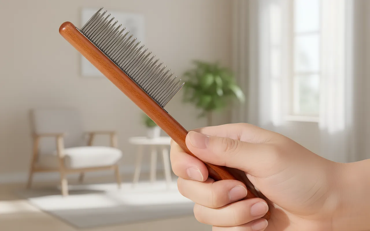 Fácil de usar e meu gato adora. O cabo de madeira é ótimo, e os dentes retiram todo o pelo escondido. Meu sofá continua limpo agora!