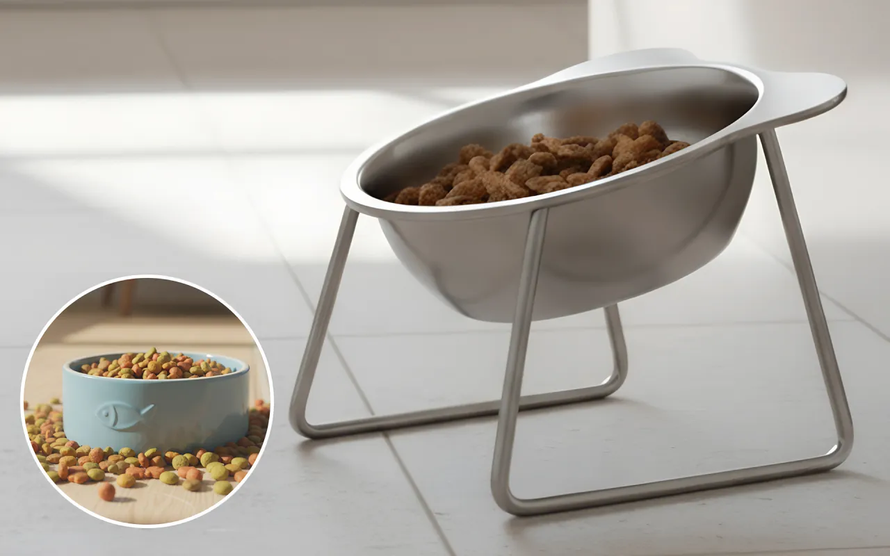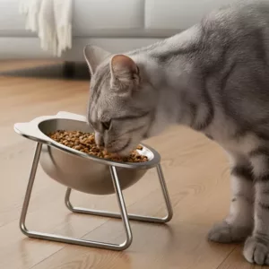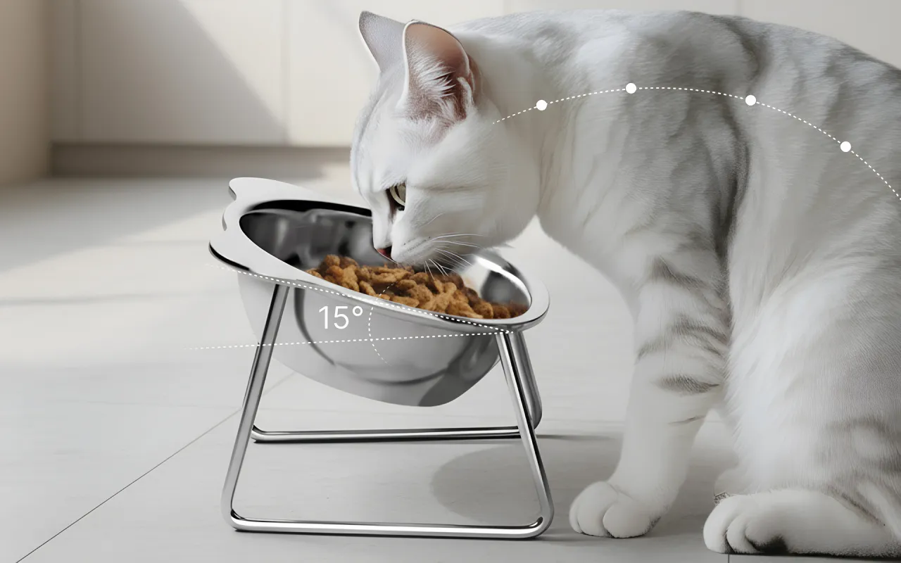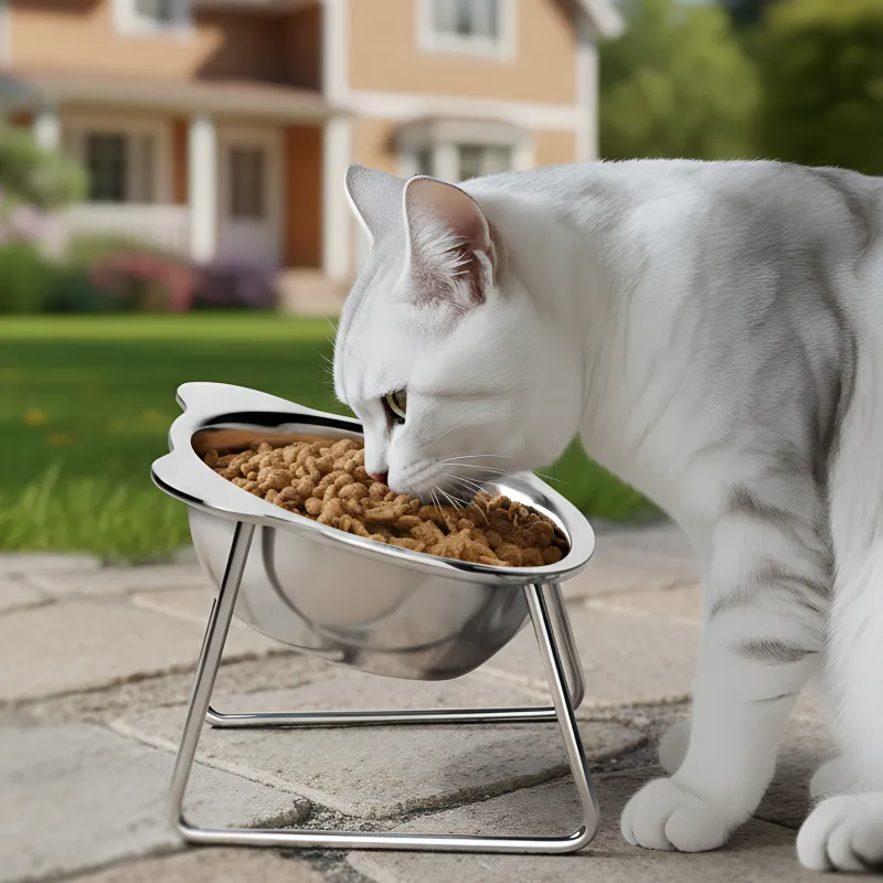 Comedouro Inclinado de Aço Inox para Gatos com Suporte – Alimentador Elevado para Pets