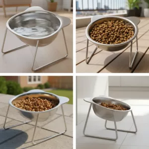24 avaliações de Comedouro Inclinado de Aço Inox para Gatos com Suporte – Alimentador Elevado para Pets