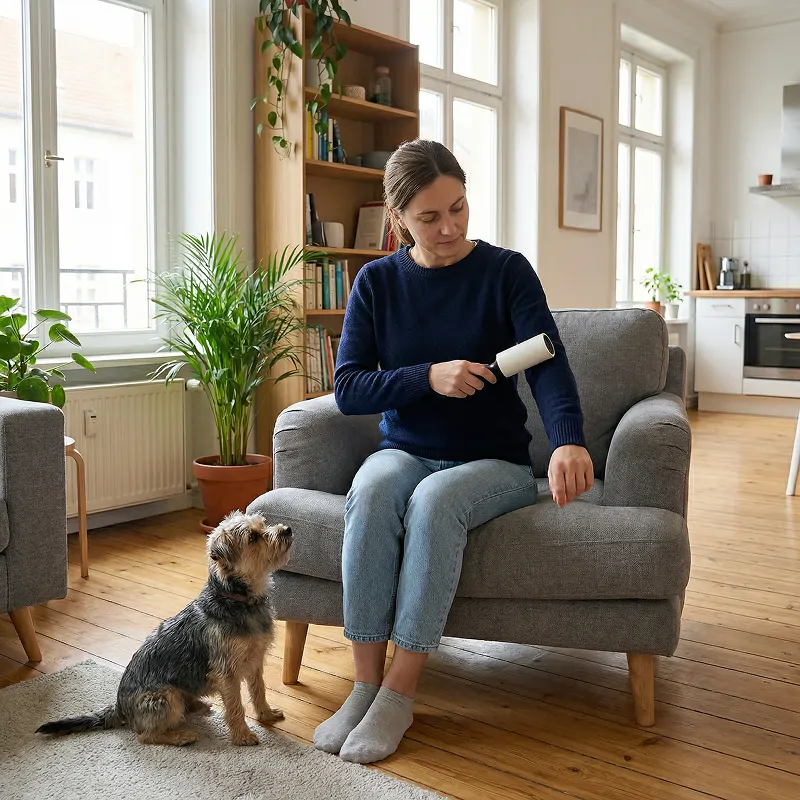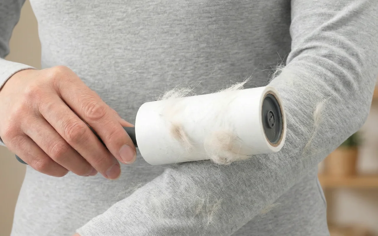 O rolo funciona em todas as superfícies que testei—travesseiros, jeans, até bancos de carro. Remove todo o pelo e migalhas difíceis, economizando muito tempo.