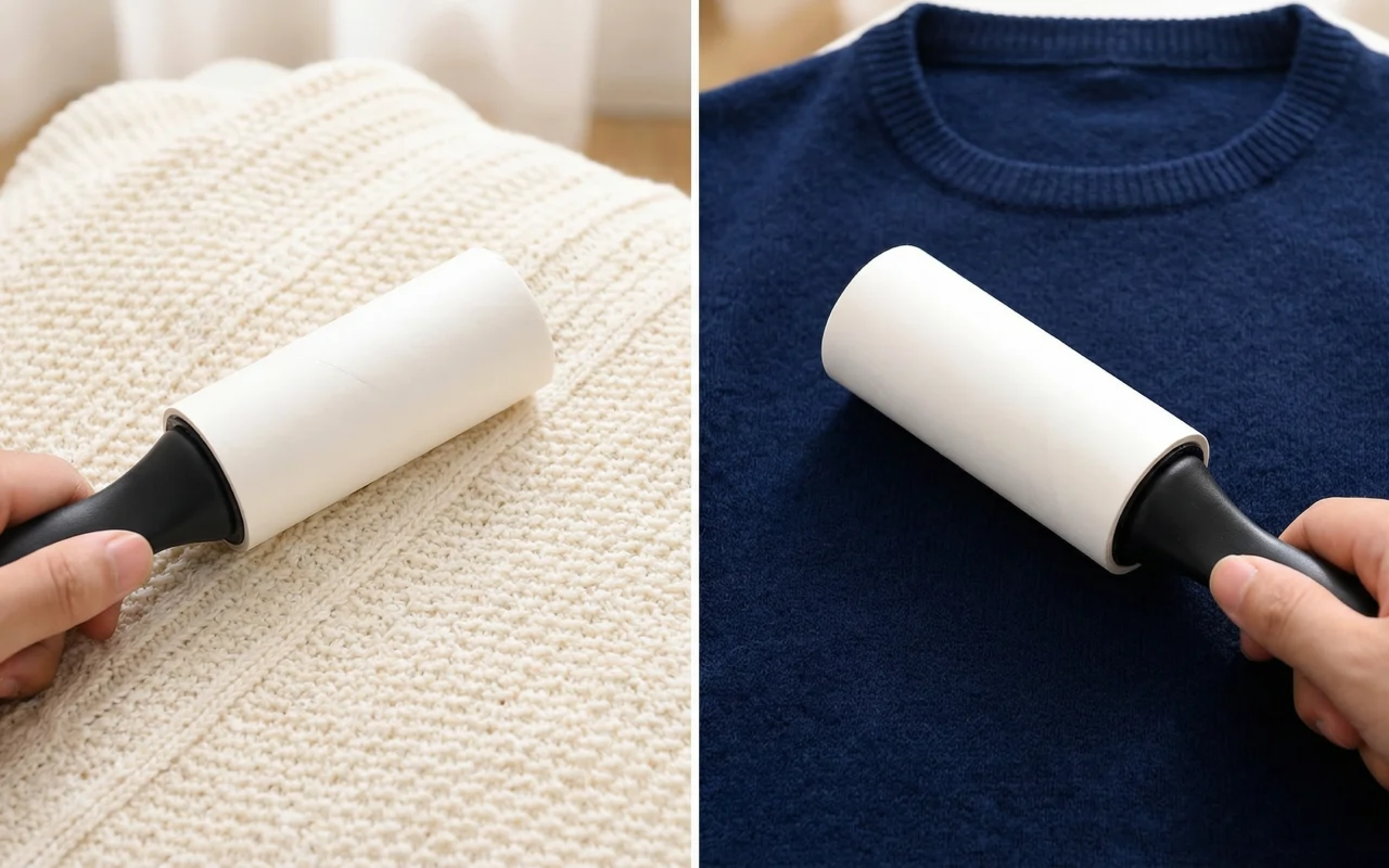 Seguro para usar em suéteres, cobertores e cortinas diariamente. As superfícies permanecem intactas enquanto tudo volta a ficar arrumado.