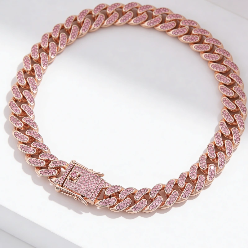 Estou impressionado com a beleza dessa corrente no meu cachorro. O fecho nunca escapa e parece resistente para durar, deixando os passeios mais divertidos e glamourosos.
