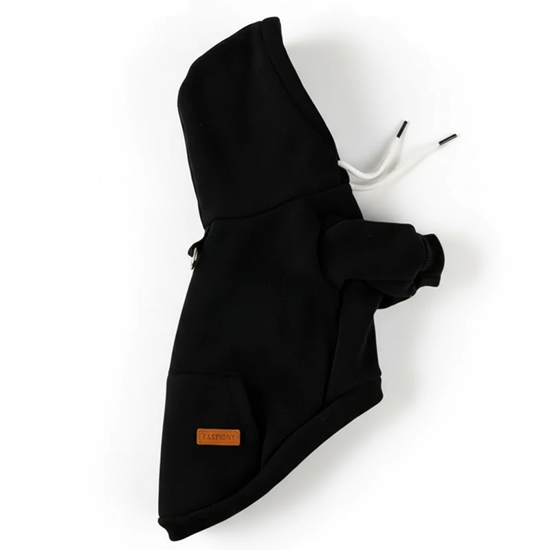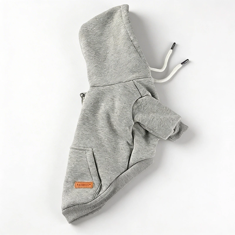 O moletom veste super bem! Com o capuz ajustável, não tem complicação, e meu cachorro não se irrita ao vestir.