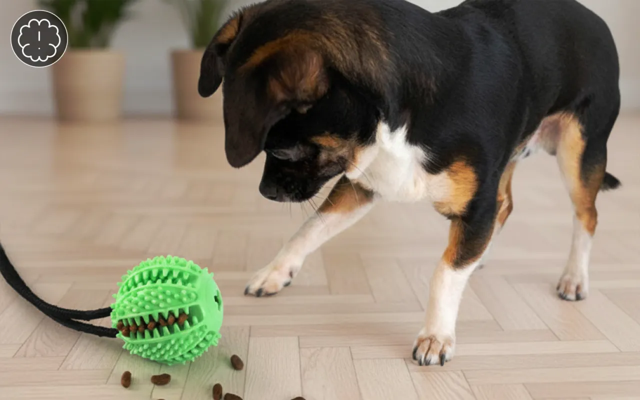 Petiscos caem durante a brincadeira, estimulando o raciocínio. Os cães adoram resolver enigmas e permanecem entretidos por mais tempo.