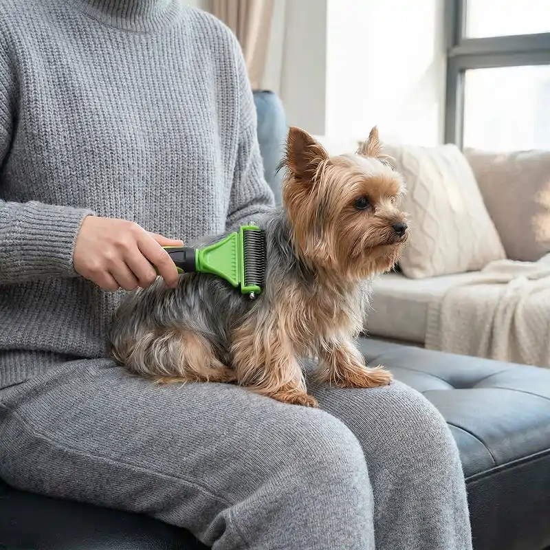 Meu cachorro tem pele sensível. Este pente de metal desliza suavemente, sem arranhar, e consigo ver uma melhor circulação e menos queda de pelos pela casa.