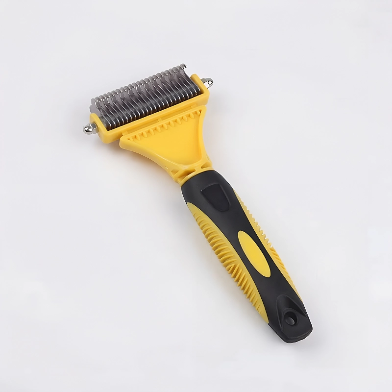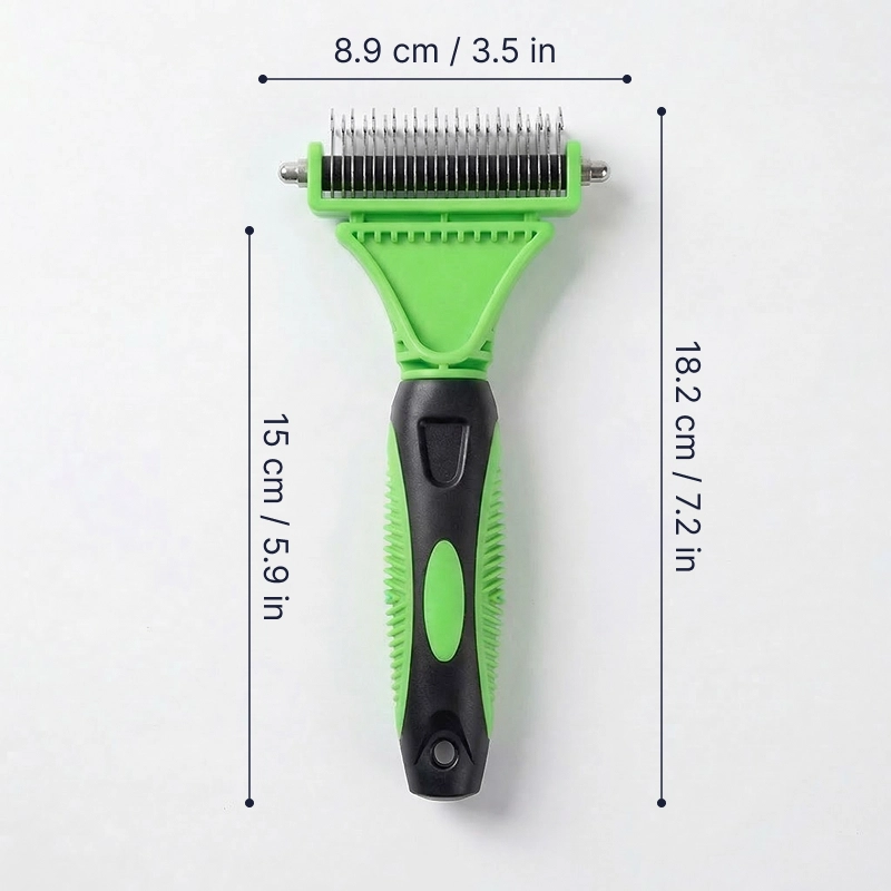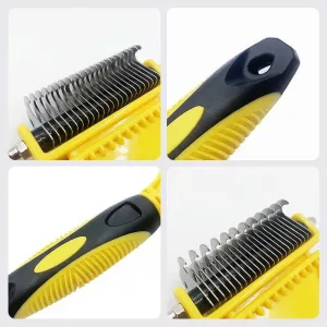 Rastelo desembaraçador de pelos para cães de aço inoxidável de dois lados – pente desembaraçador e removedor de subpelos