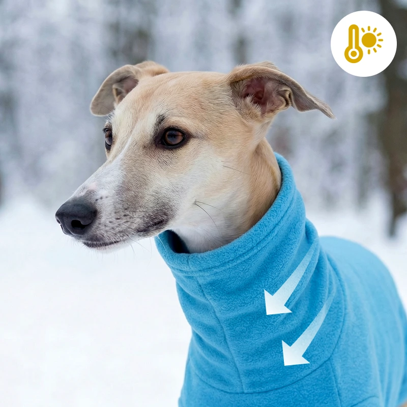 Fleece macio protege contra ventos fortes e baixas temperaturas. Os cães ficam contentes e felizes durante longos passeios ao ar livre.
