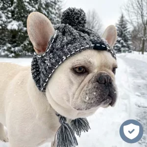 Meu pug fica tão fofo com esse gorro de tricô! Os buracos para as orelhas são perfeitos e mantêm a cabecinha dela aquecida até nas manhãs ventosas no parque.