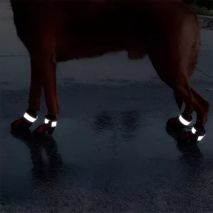 Essas botas são ótimas para os passeios noturnos. As faixas refletivas deixam seu amigo peludo visível em condições de pouca luz.