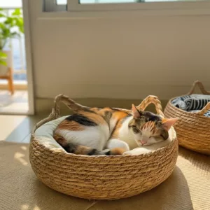 Que esconderijo ótimo! O travesseiro macio e a cesta natural fazem minha gata se sentir segura, e é fácil de manter limpinha.