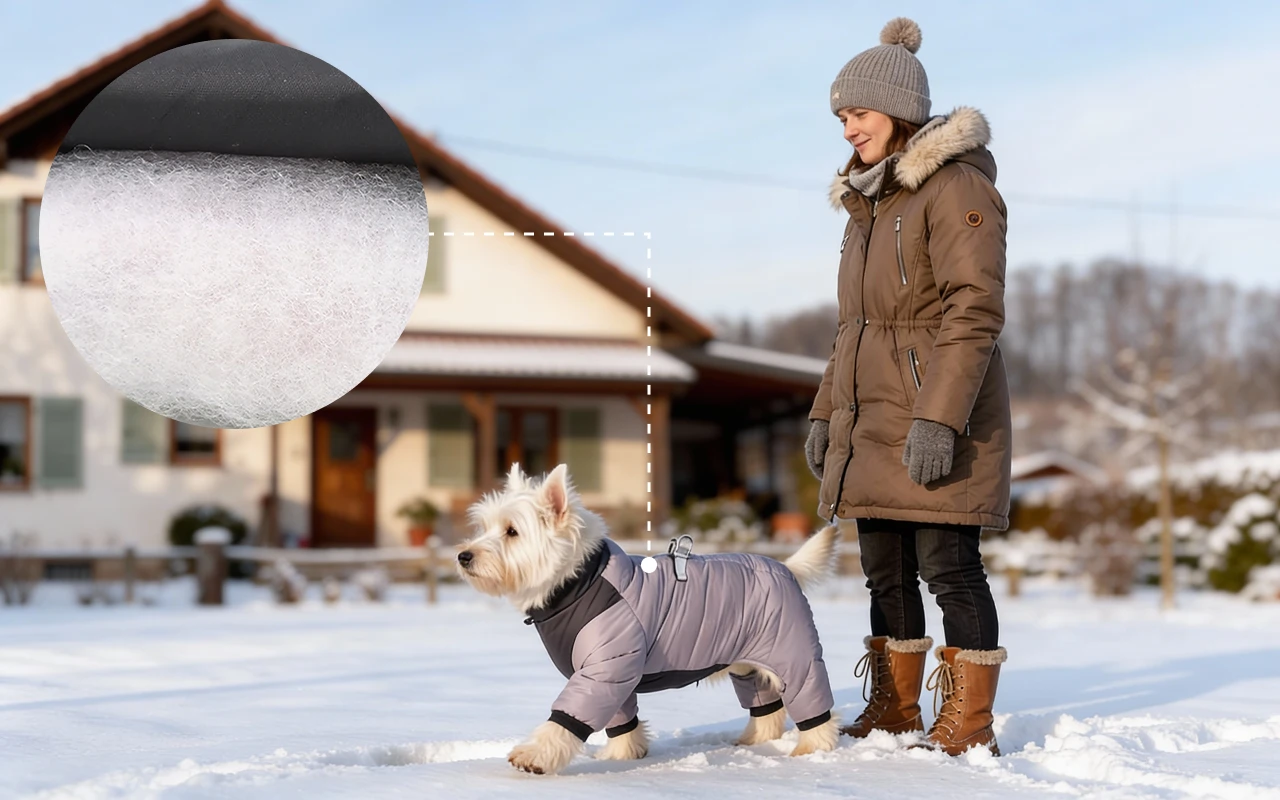 Enchimento grosso evita o frio durante os passeios congelantes. Os cães ficam felizes e protegidos sem tremer do lado de fora.