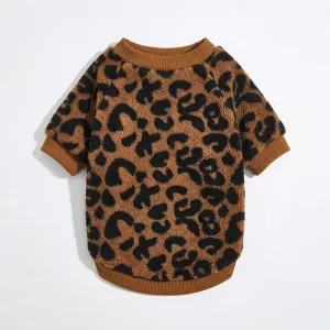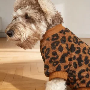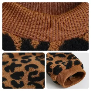 Suéter de Pescoço Redondo Para Cachorro Inverno Quente Pulôver Estampa Onça