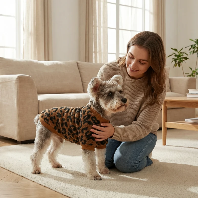 Não poderia estar mais feliz com este suéter para meu cachorro! Chega de tremer durante os passeios. A estampa de leopardo sempre recebe elogios dos vizinhos.